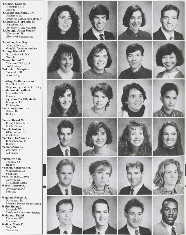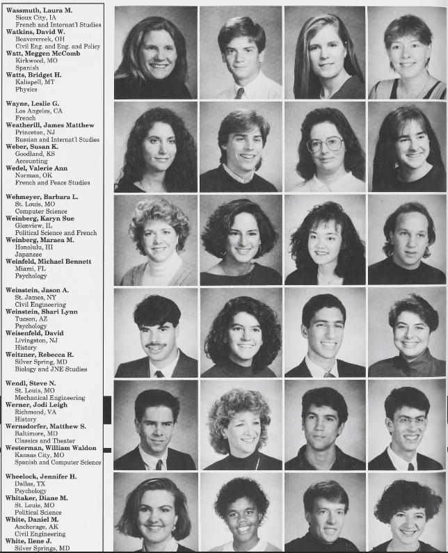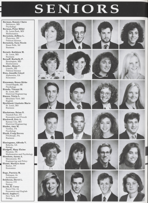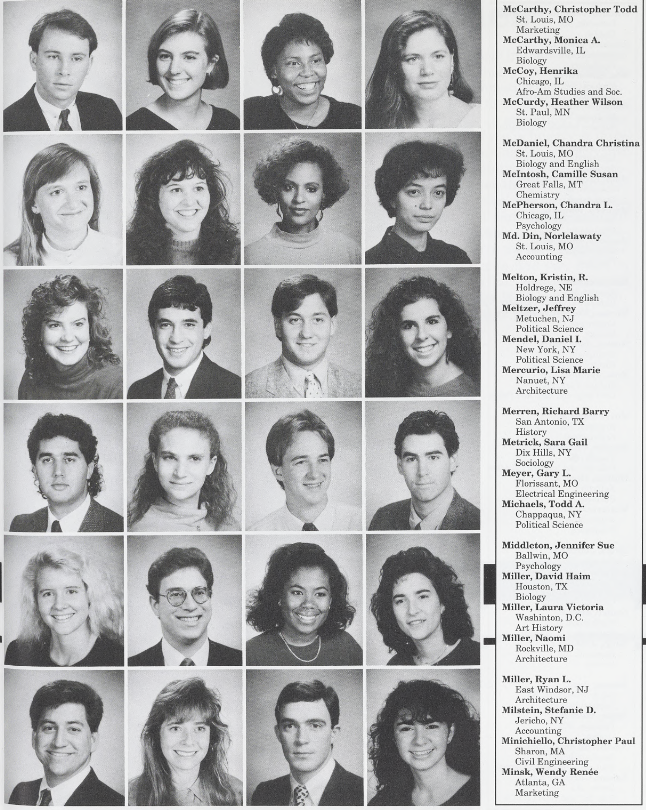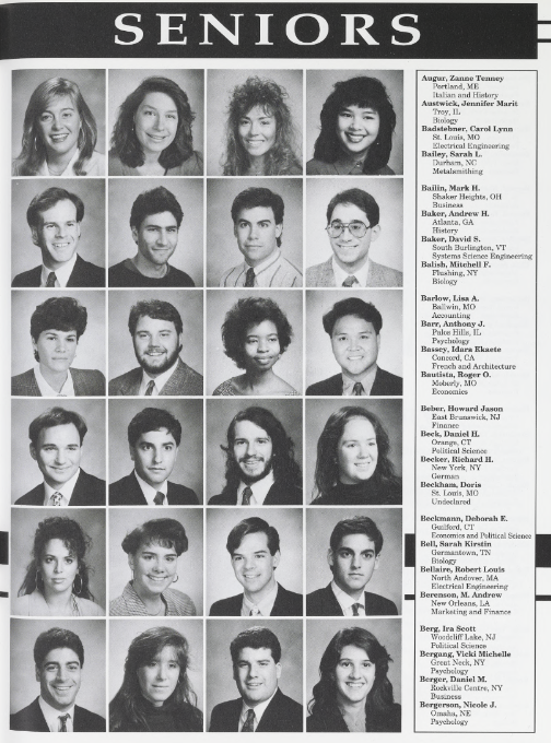 Take a walk down memory lane with these photos of the Class of 1991! This photo gallery was collected from WashU, University Archives, and personal photos submitted by your classmates.